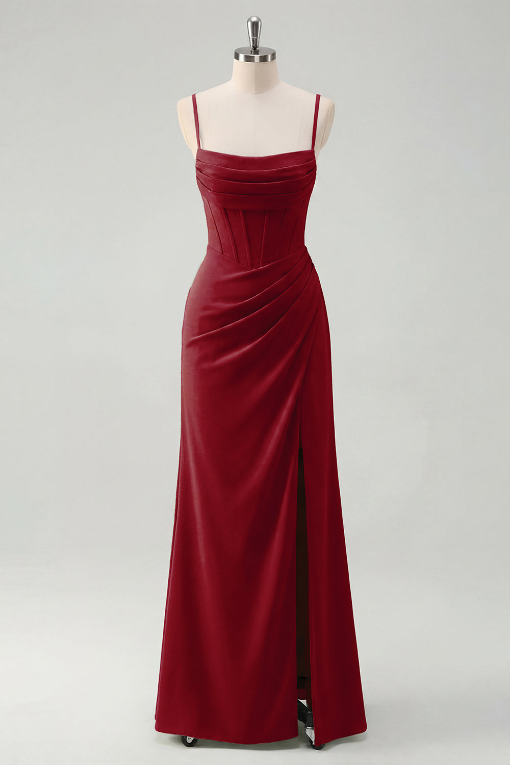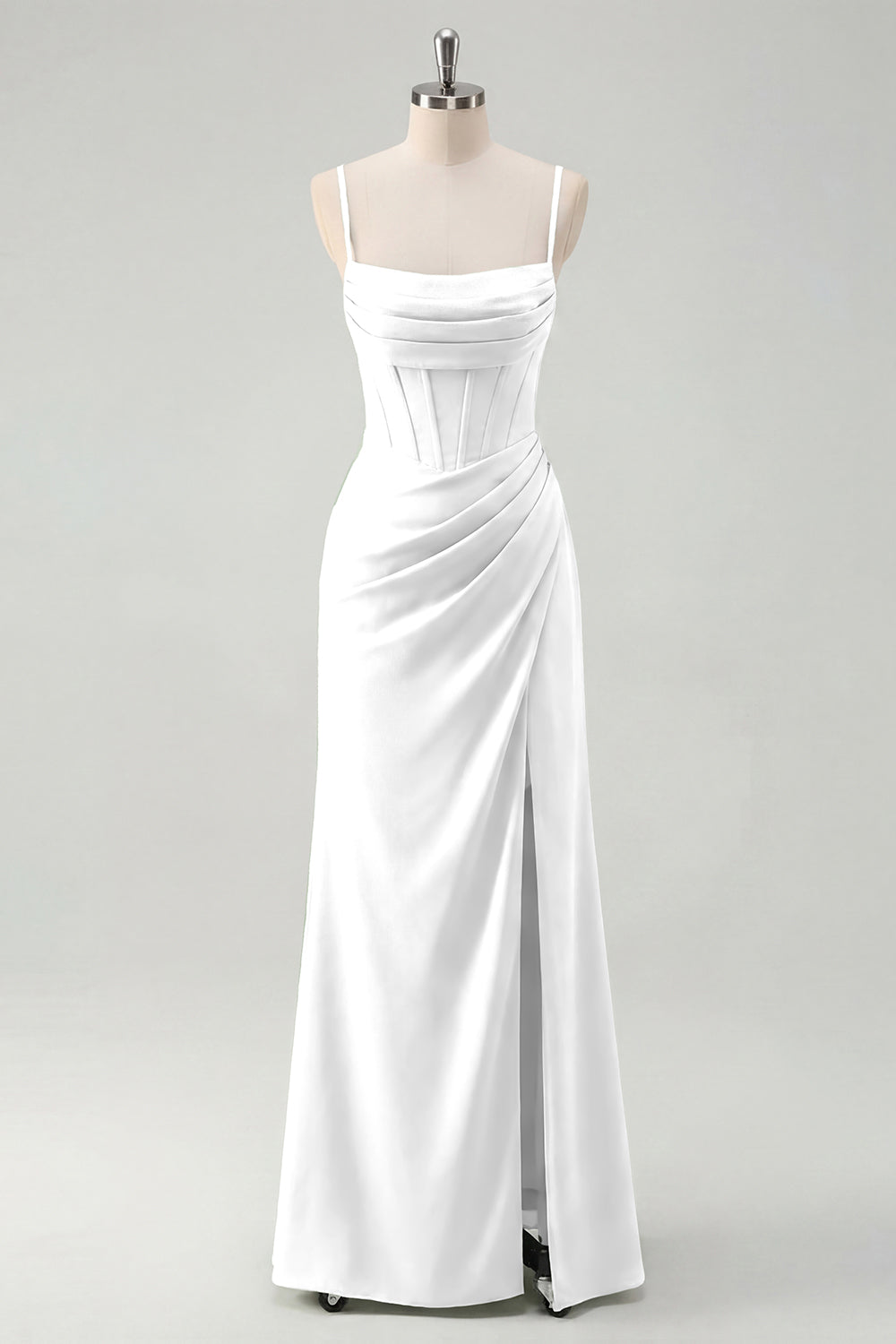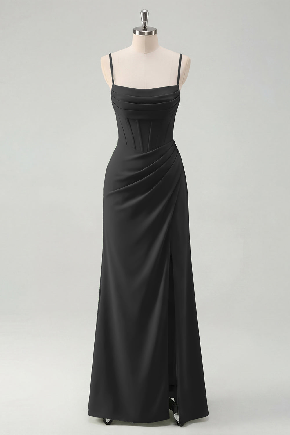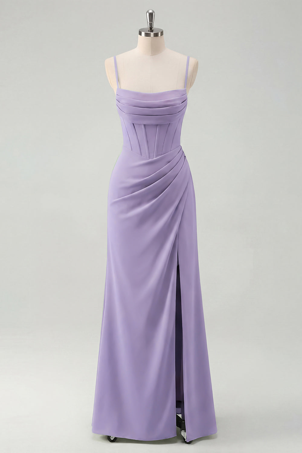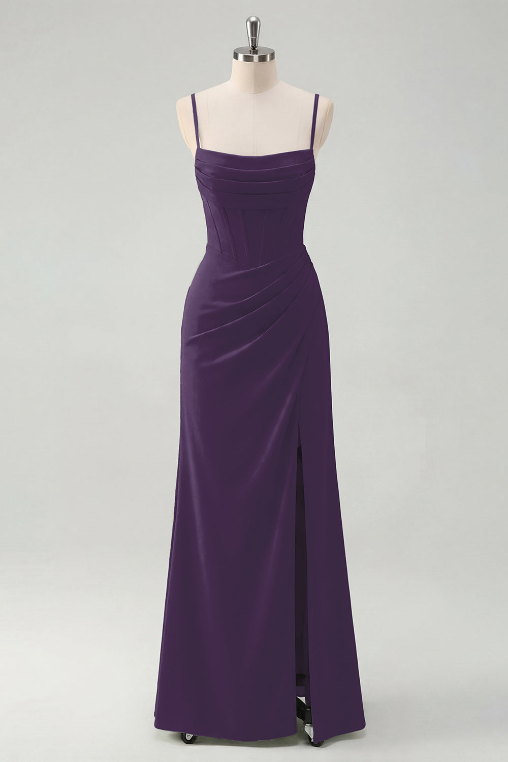 Sage Spaghetti Straps Sheath Bridesmaid Dress with Slit