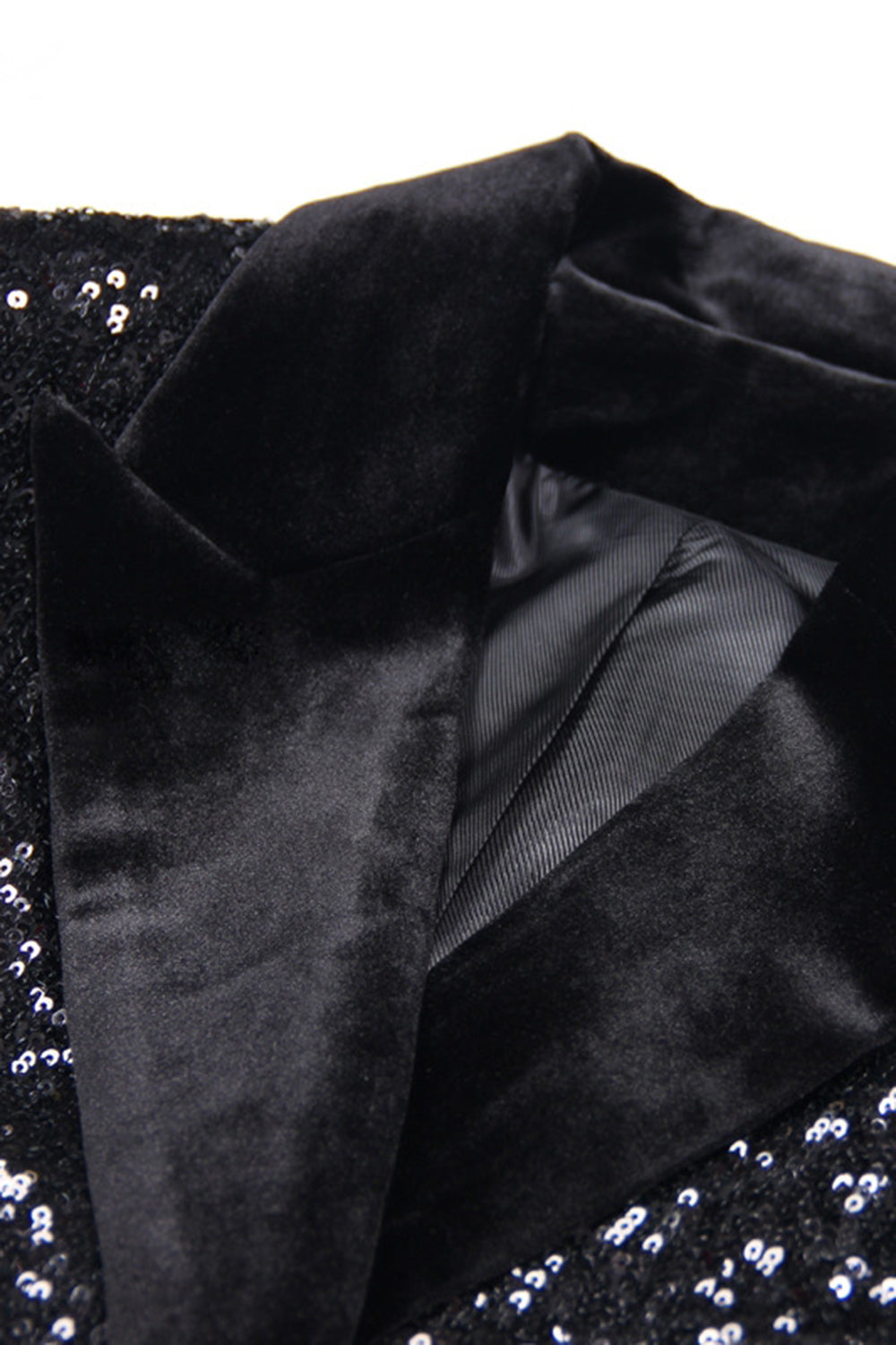 Sparkly Black Peak Lapel Women Blazer with Pockets