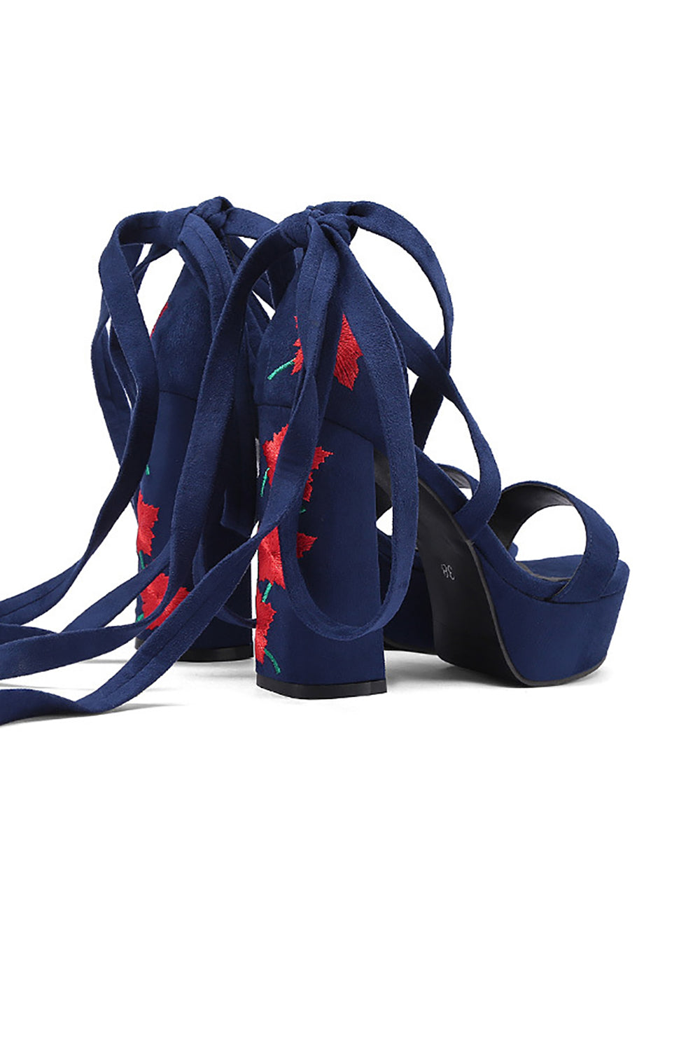 Women's Black Embroidery Strappy Chunky Heel Open Toe Sandals Shoes